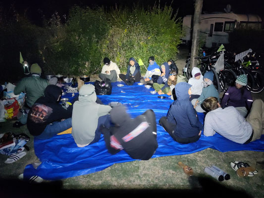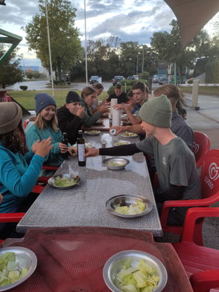 Das Gepäck und die Velos kommen später als erwartet an und können erst morgen Vormittag in der Schule abgeholt werden (am besten um halb 12 Uhr am
