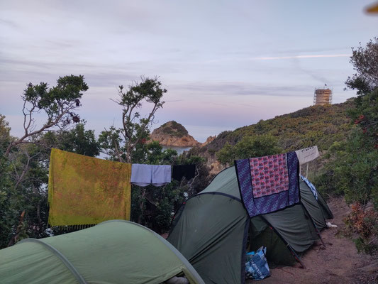 Hoi zämä! Wir sind gestern nach einer mehr oder weniger durchwachten Nacht in Korsika (Bastia) angekommen. Nach ca. 11 km schönem Küstenweg sind wir nun auf Bigluglia südlich von Bastia auf einem