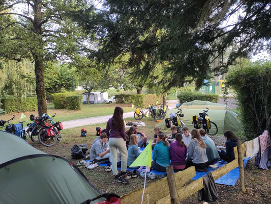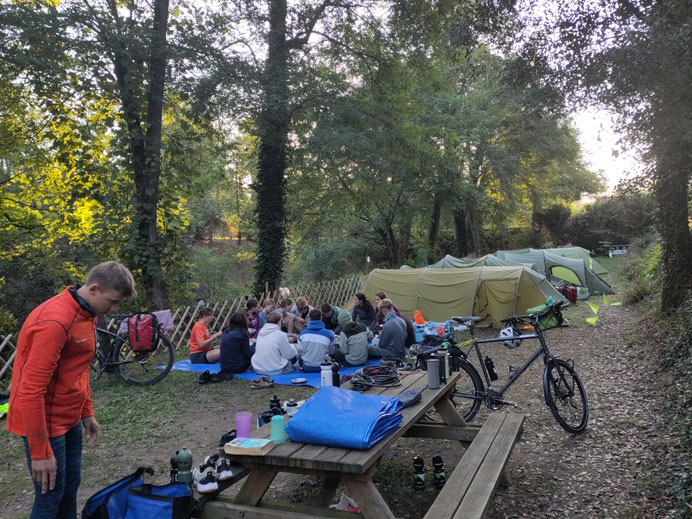 Guten Morgen! Wir sind inzwischen nach den Zwischenstopps am 7. September in Cruas und am 8. September in Mondragon gut in Avignon angekommen. Gerade werden die Velos beladen (1.